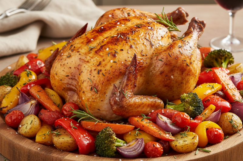 • Enfournez pour environ 40 à 45 minutes, jusqu’à ce que le poulet soit bien doré et les légumes tendres.